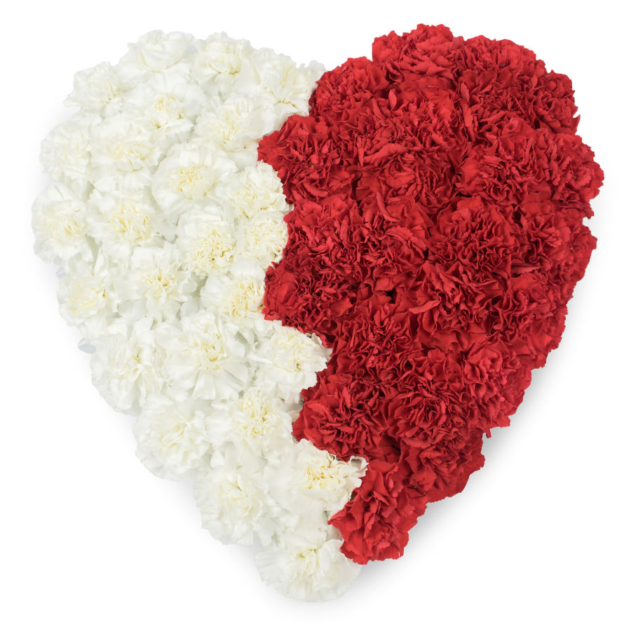 Express your heartfelt emotions with our elegant heart-shaped mixed carnations bouquet, featuring a beautiful combination of white and red carnations. Each bloom is hand-selected to ensure superior freshness and vibrant color, making this arrangement a luxurious and meaningful gift for any occasion.